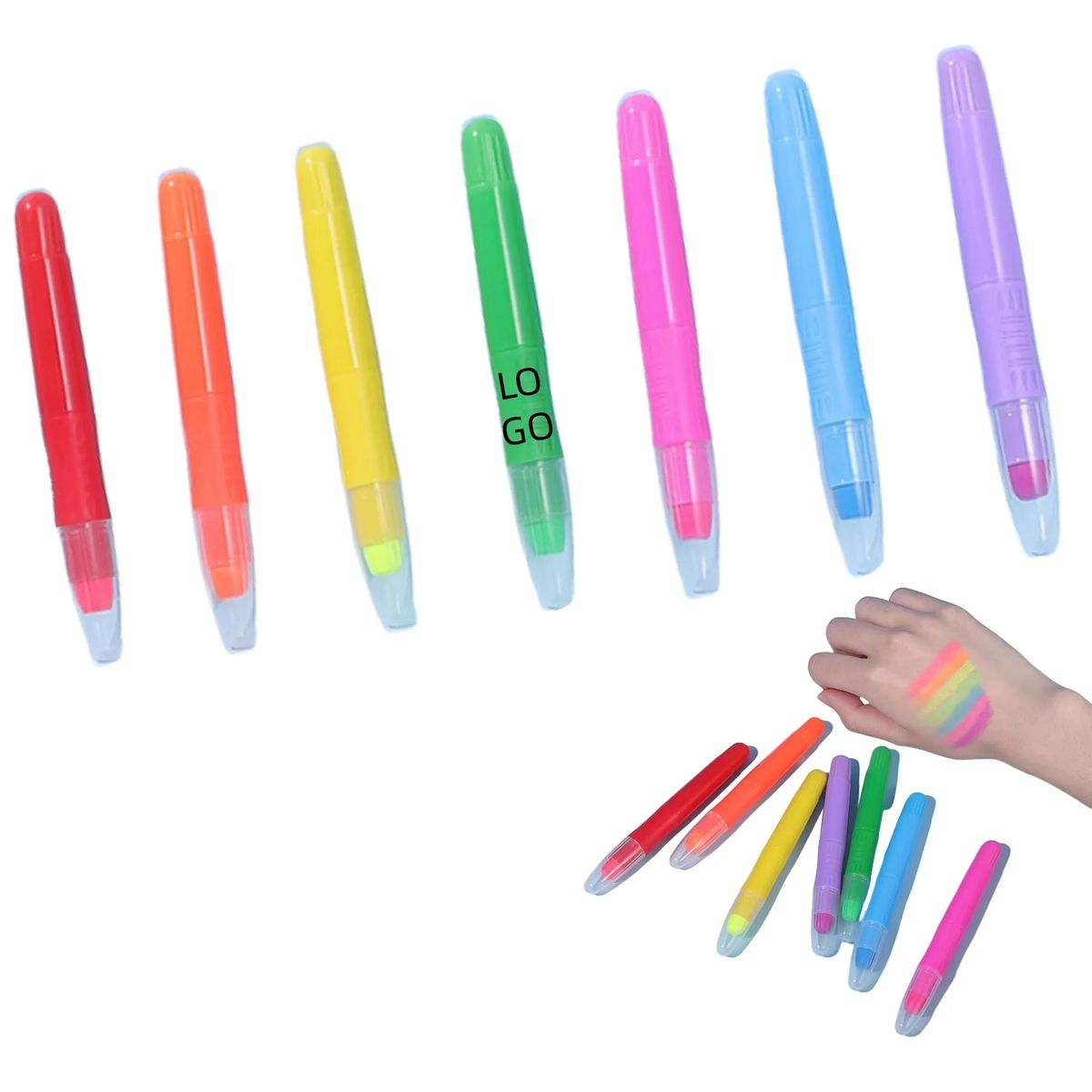 This glow-in-the-dark crayon is made from eco-friendly, non-toxic and water-soluble materials. It has a soft yet break-resistant texture, making it suitable not only for drawing but also for body painting. It glides on smoothly without irritating the skin, delivering even, vibrant color that washes off easily with water. With highly saturated pigments, it offers bright colors by day and an exciting glow by night, ensuring your skin art stands out at any evening event. Safe, fun, and suitable for all skin types, it's a must-have for festive occasions and creative expression. Add your logo in any color to enhance brand visibility and make it a memorable gift for clients and friends.