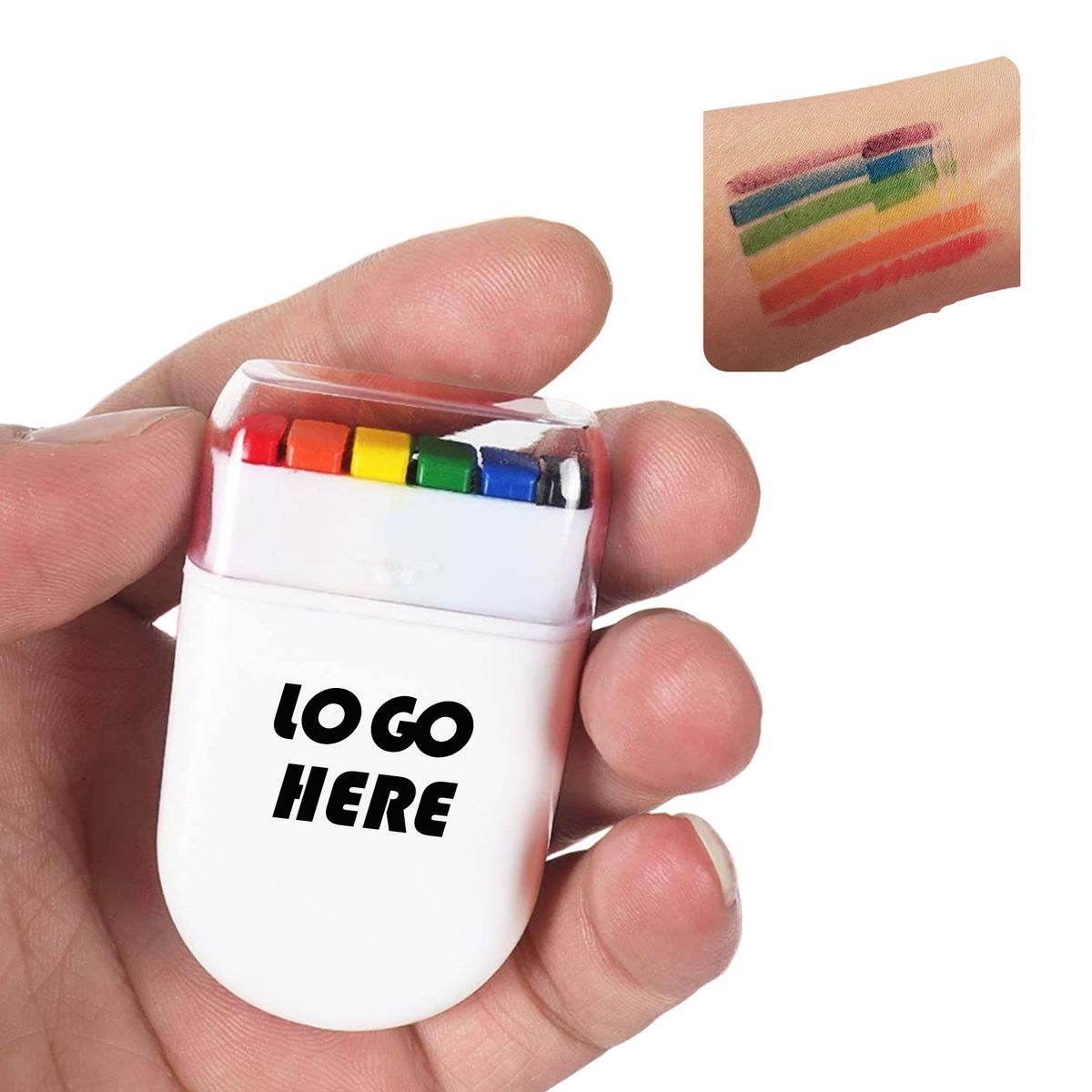 Add a splash of color to any occasion with these 6 rainbow face paint crayons in a handy PP case! Made for smooth application, they offer bright, long lasting shades that are safe for skin. Whether it's a Halloween costume, a birthday party, or a creative afternoon, the durable PP box ensures the crayons stay protected and ready to use, making them a fantastic choice for anyone looking to explore face painting with ease. 100% guarantee for quality, rush service is available. 2.4" L X 1.4" W X 0.6" H